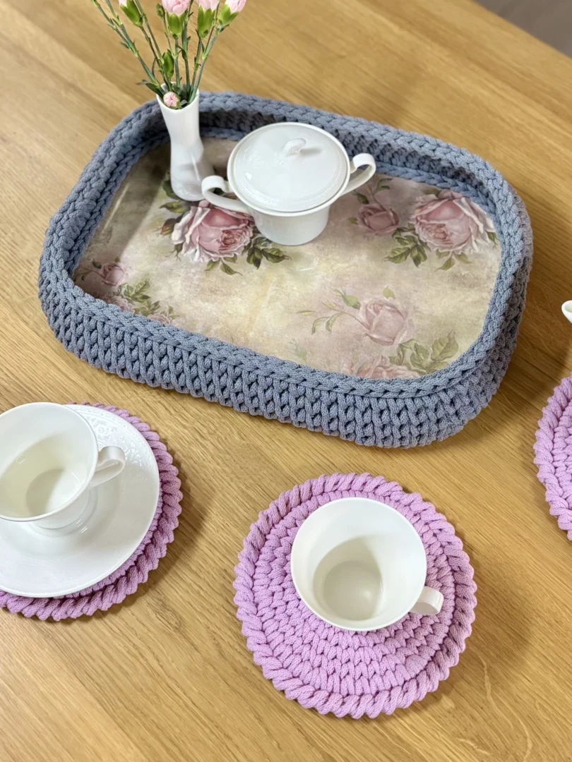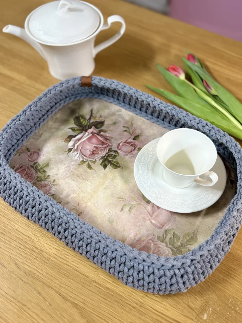 Ta taca powstała z myślą o Tobie – o osobie, która lubi otaczać się wyjątkowymi przedmiotami z charakterem. To autorski produkt handmade, w którym łączę dwie techniki rękodzielnicze: dekoracyjny decoupage i szydełkowanie.