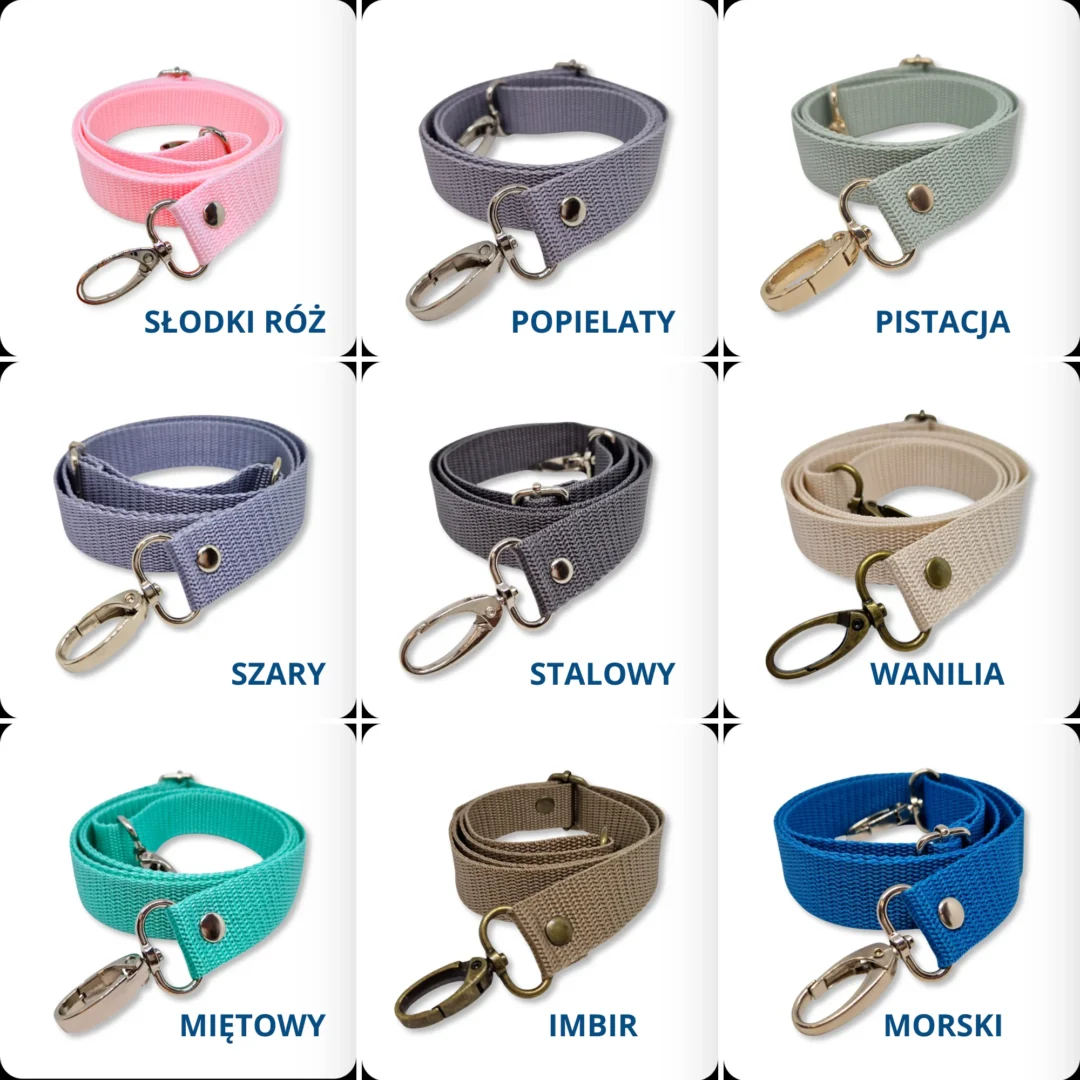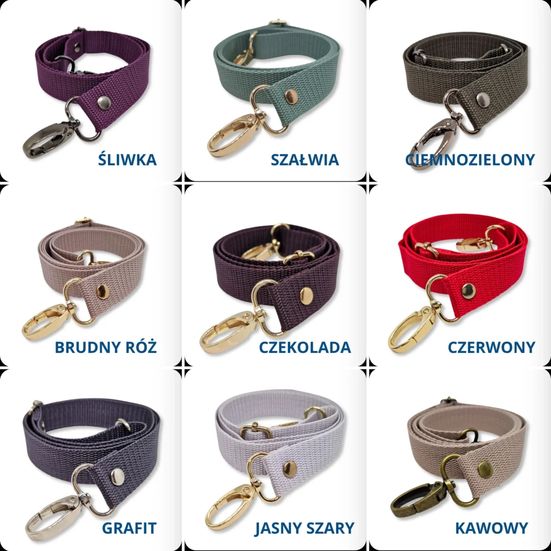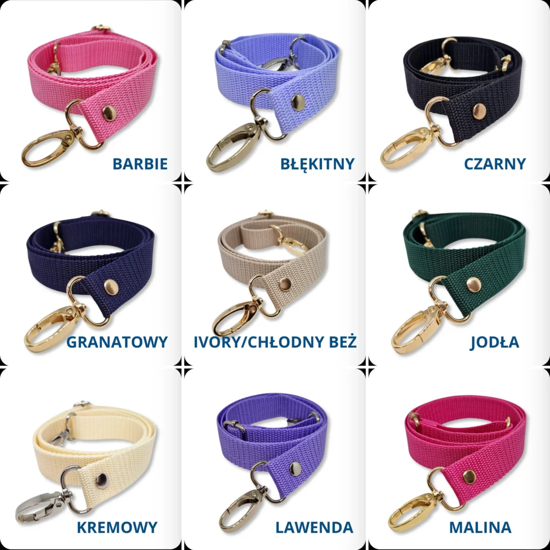 Torebka posiada regulowany parciany pasek o długości od 81 do 148 cm, dzięki czemu możesz nosić ją tak, jak lubisz – na ramieniu lub przez ramię. Metalowe detale – zapięcie oraz wykończenia paska – występują w kolorze złotym, starego złota lub srebrnym, co pozwala dopasować torebkę do własnych preferencji.